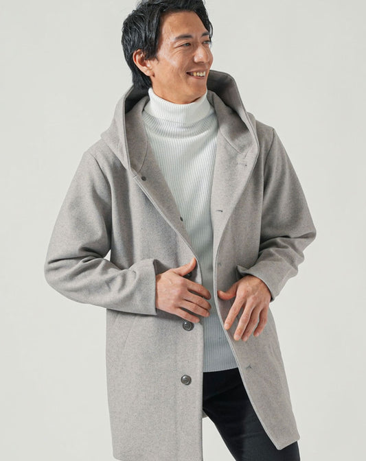 日本製レザーベルト付きショート丈メルトンイタリアンスタンドコート