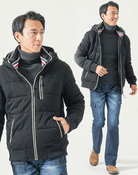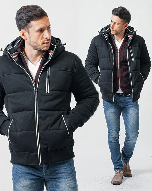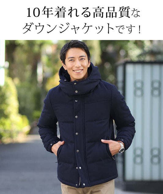 メルトン素材ボリュームネックフードデザインダウンジャケット