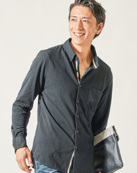 サーモライト前立てチェック長袖ボタンダウンシャツ