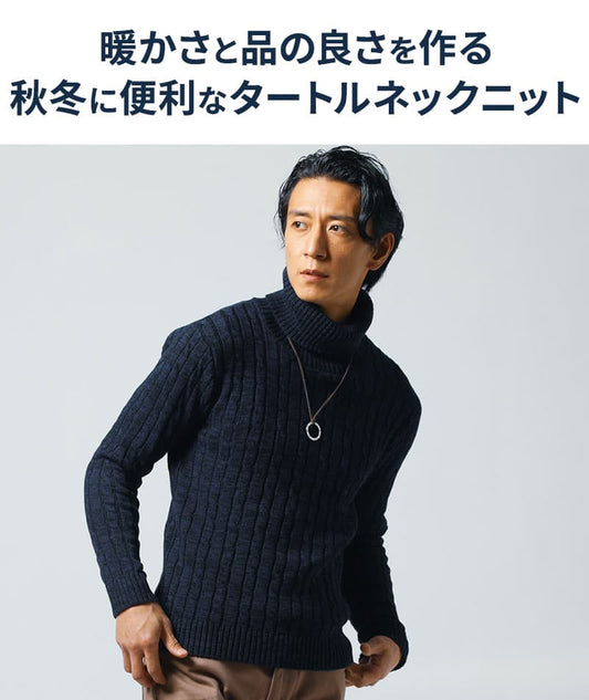 アラン編みアクリルタートルネックニット