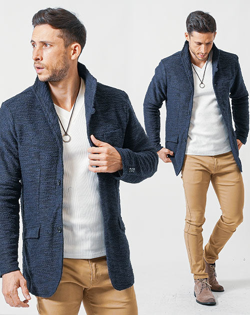 杢スラブスリムフィット細身イタリアンカラージャケット