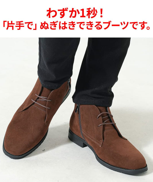 ツイード素材レザー切り替えサイドジップチャッカブーツ