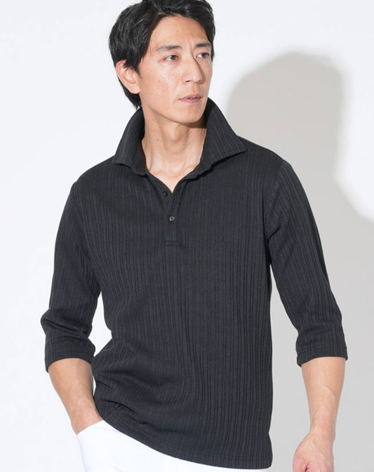 立ち襟おしゃれ七分袖メンズワイヤー入りイタリアンスタンドカラースキッパーポロシャツ