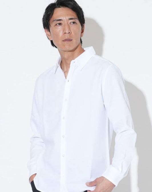 日本製ホリゾンタルカラー無地・ストライプ長袖スリムフィットシャツ