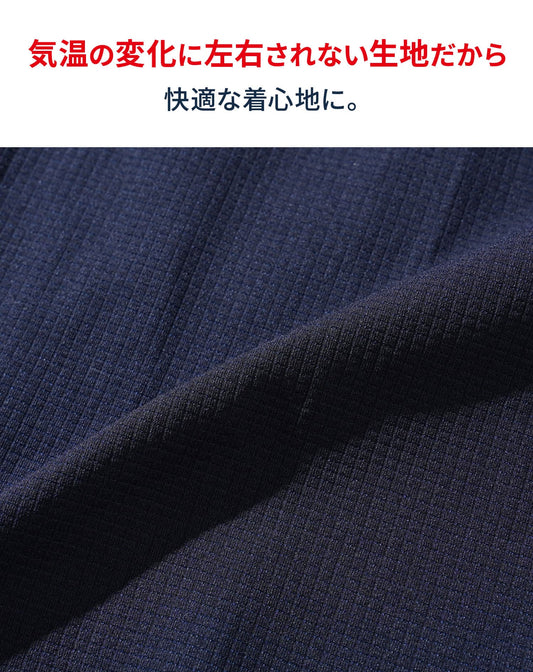 裏地ドットデザイン7分袖・半袖テレコ素材ポロシャツ