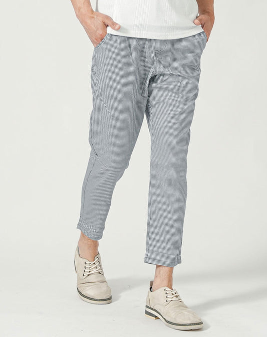 40代メンズ3点コーデセット グレンチェックロングコート×白タートルネックニット×黒スリムチノパンツ