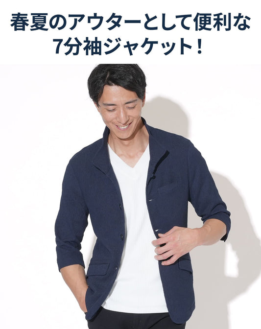 襟ワイヤー楊柳イタリアンカラー7分袖ジャケット