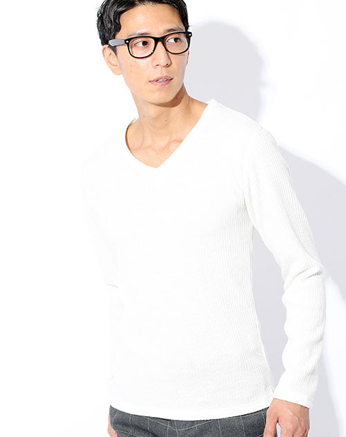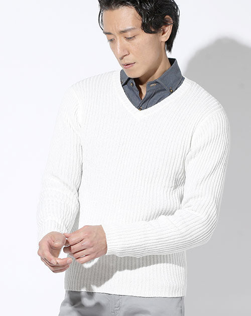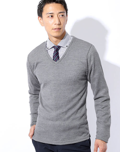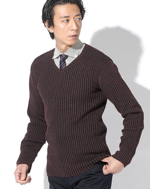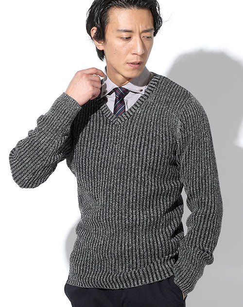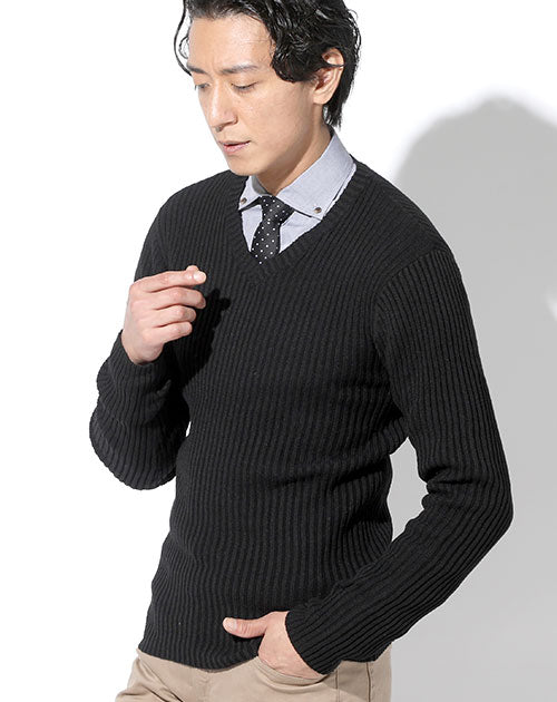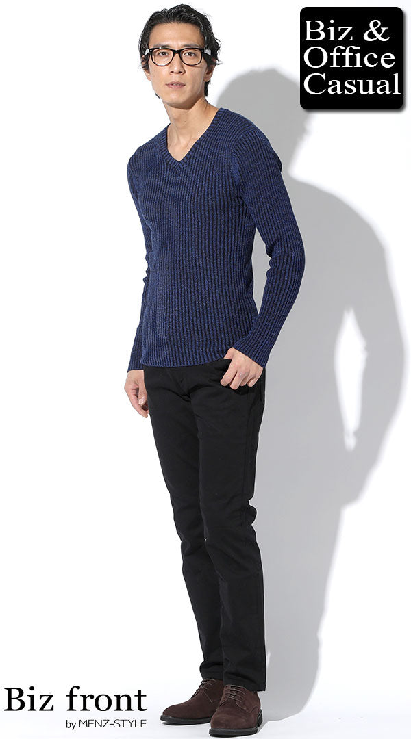 タイトフィットVネック二重臼リブ編みストレッチニットセーター Biz