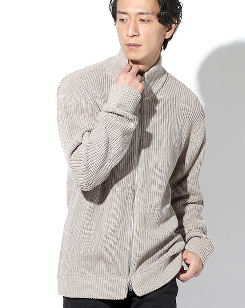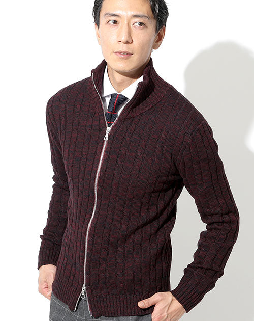 このタイプが「知的でおしゃれ」と感じられるのは、首元まで生地があることで自然と視線が上に集まり、顔まわりが引き締まって見えるからです。ネクタイをしなくてもきちんと見えるため、ノーネクタイ勤務の男性に最も人気のあるニットといえます。