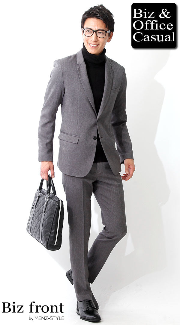 タートルネックはスーツ・ジャケットどちらにも合います。特にネイビー・グレー・ブラックなど落ち着いた色でまとめると、知的で落ち着いた印象に仕上がります。