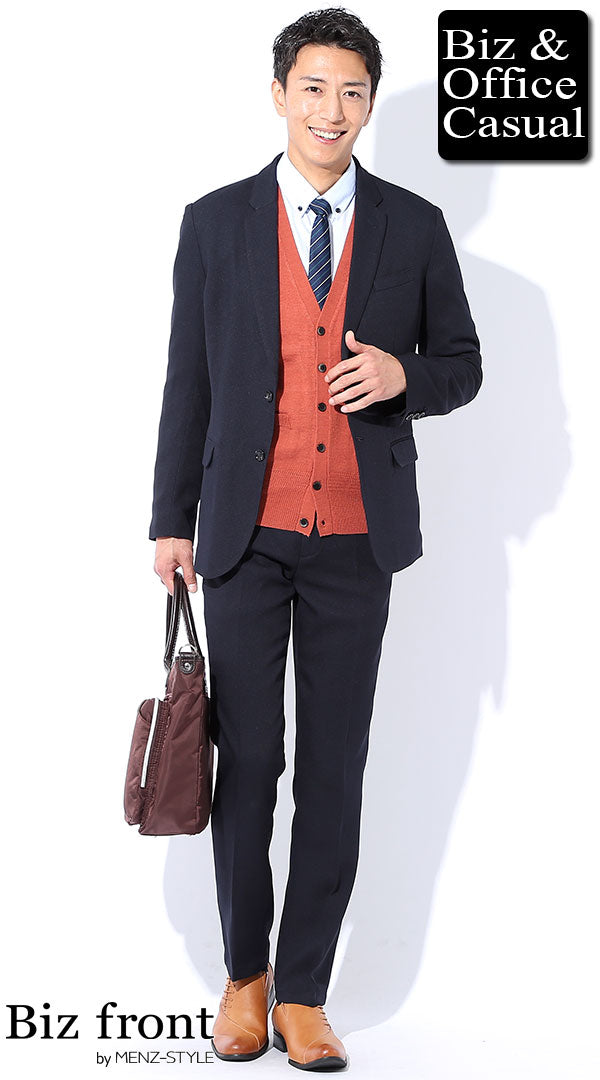 ネイビースーツ×ニットセーター|誠実さと洒落感を両立する定番スタイル