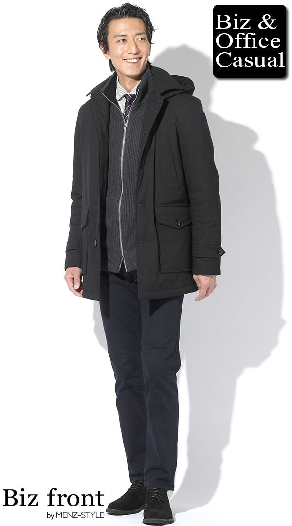 この3つを満たすだけで、“カジュアルすぎる・もこっと膨らむ・スーツ・ジャケットに合わない”といった悩みは8割以上解消します。