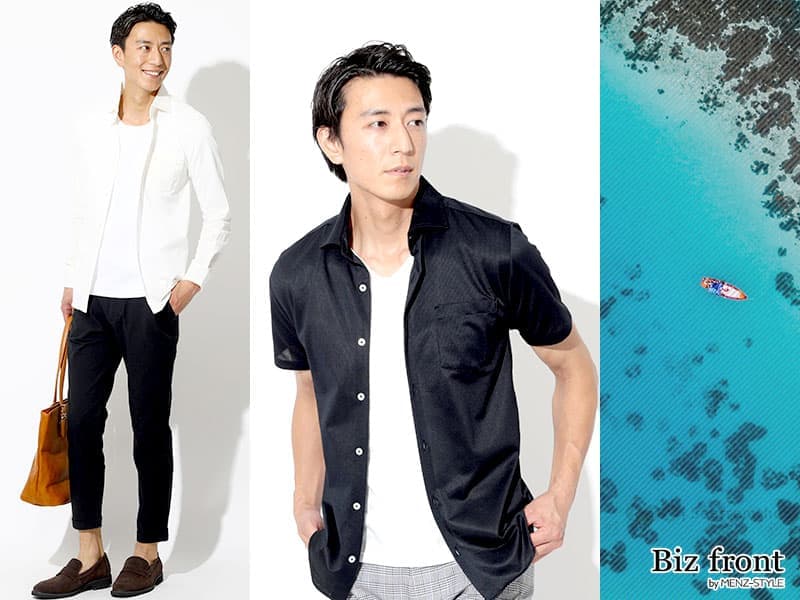 夏は涼しさ重視でだらしなくならないよう、大人の雰囲気のシャツを選びたいですね。