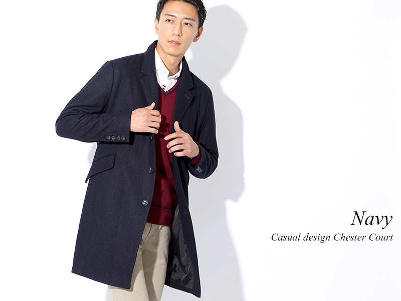 ワンランク上のオシャレを作り上げるチェスターコート。こちらのチェスターコートはよりカジュアルなシーンをイメージしたスタイリッシュなデザインとなっています。絞りの効いたシルエットや斜め掛けのポケットライン。さらっと羽織って、気軽に使えるシンプルなコートです。
