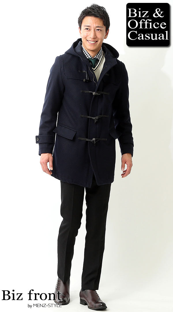 知性ある上品な雰囲気を持ちつつ、どこか親しみや人懐っこさを感じさせるダッフルコートはまさにビジネスシーンにもカジュアルシーンにも融通の利くビジカジアイテムと言えます。ボリューム感はありながら大きすぎないフード、本革仕様でウッド調の質感のあるトグルボタン、ウール生地の軽さと柔らかさ。日本製の名に恥じない、上質な大人のダッフルコートです。
