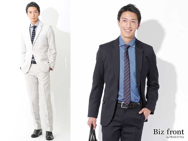 夏素材である「麻」「接触冷感」など通気性の良い生地をとりいれたおしゃれなカジュアルスーツが人気です。