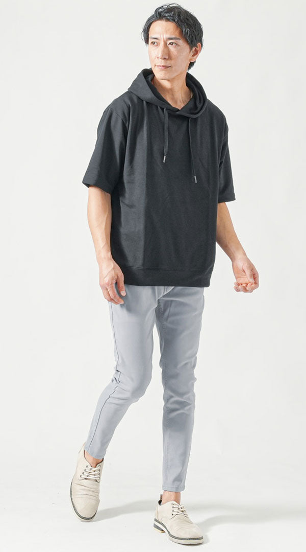 40代であれば、黒やブラウンのレザー系シューズを合わせることで、大人らしく清潔感のあるスタイルになります。