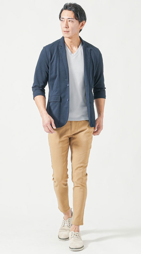 コーデはテーパードパンツがより活躍できるIラインシルエット、Yラインシルエットのコーデをつくることで、スマートな40代男性の印象をつくりだせますよ。