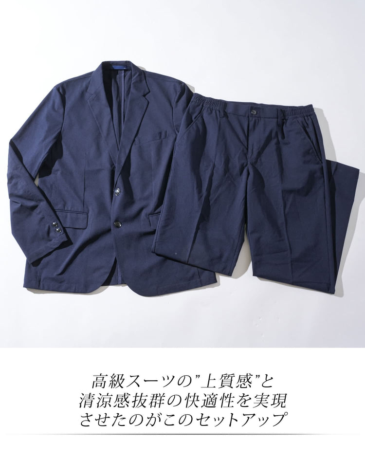 セットアップ 接触冷感長袖テーラードジャケット×テーパードイージーパンツ