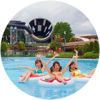 東京都稲城市の遊園地・よみうりランド内にある「プールWAI」は、広々とした敷地に5つのプールと8種類のスライダーがあります。