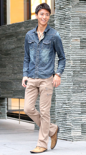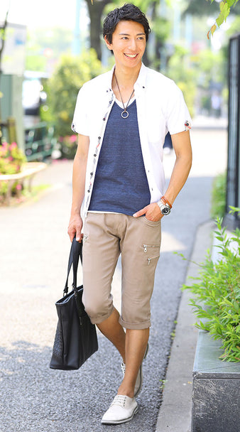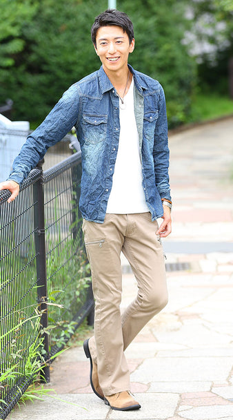 ここでも同じようにブラウン色の靴を合わせたけど、さらに白シャツをいれることで明るめの色を1点追加。