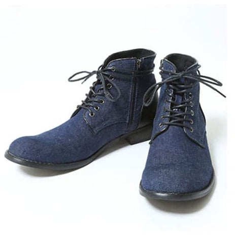ブーツの素材にデニムを使用することで、オシャレさを演出しました。人気のレースアップデザインを取り入れながら、サイドジップも付いているので機能性も抜群です。