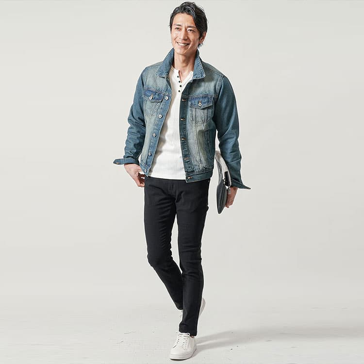 デニムで抜け感も加わり、ビジネスカジュアルから休日まで幅広く活躍します。