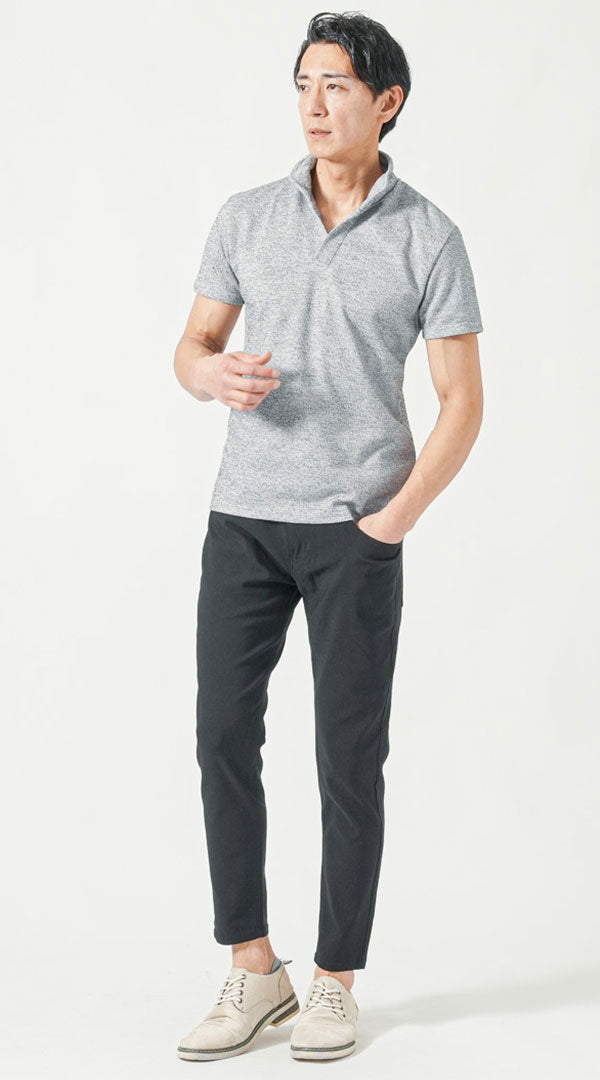 ポロシャツ×黒スキニーパンツ夏コーデ