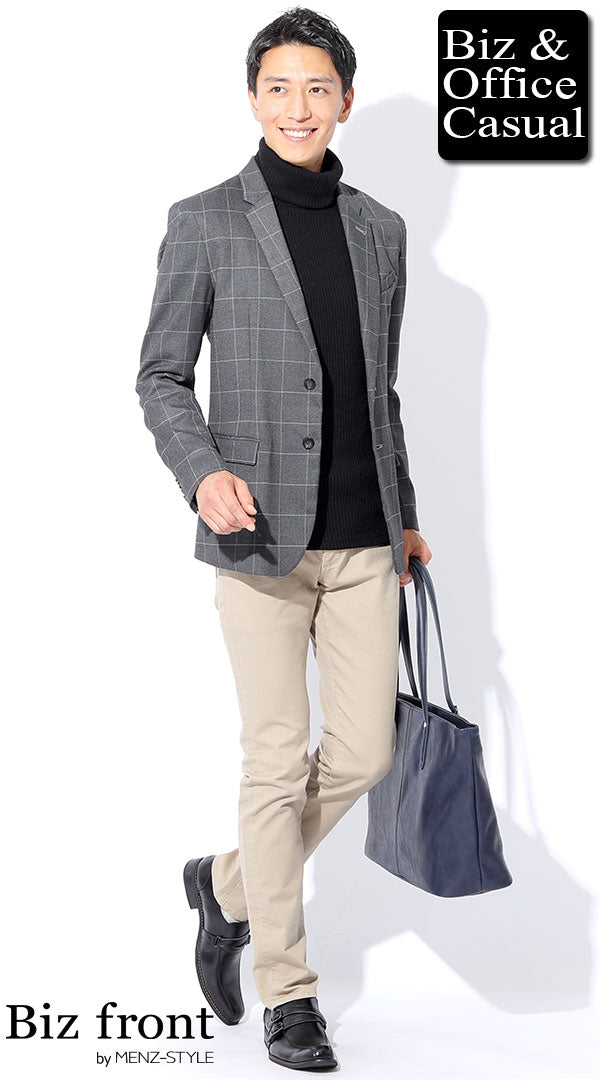 イタリアンカラーの立ち襟がカッコいいジャケットを羽織ったスタイル。インナーをタートルネックに変えるだけでいつもと印象を簡単に変えれるのでおすすめです。