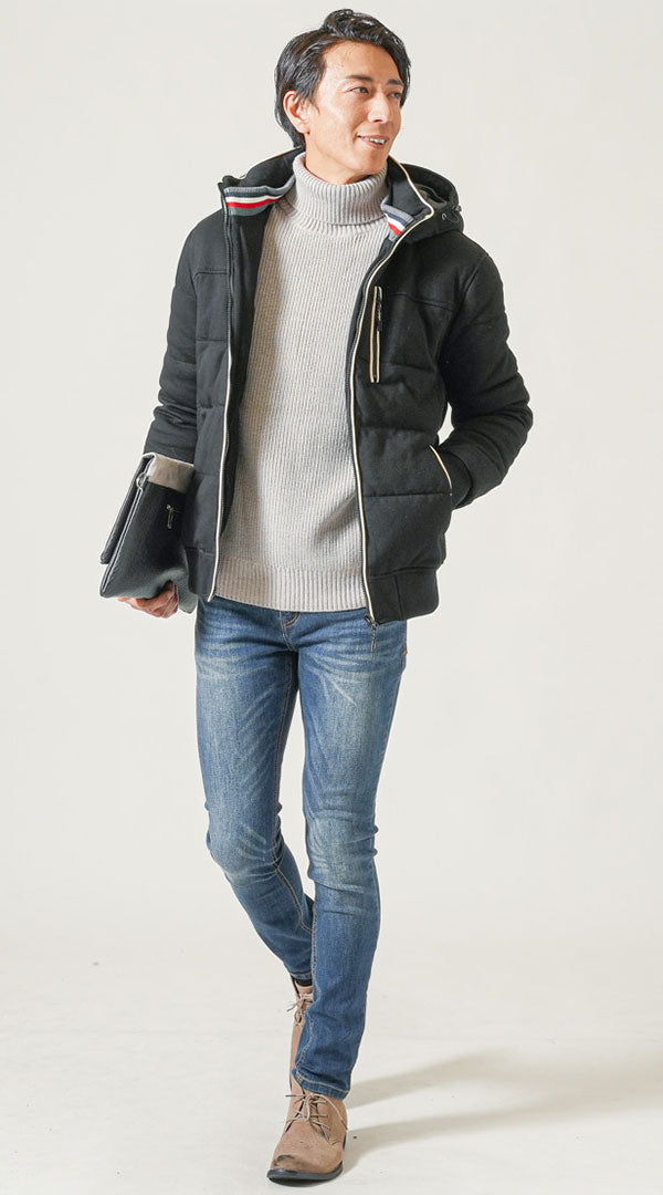 タートルネックニット×中綿・ダウンジャケットのコーデセット