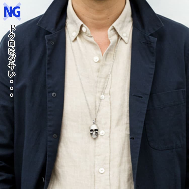若者がつけているようなドクロのネックレスは40代だとダサいと見られてしまいますよ。