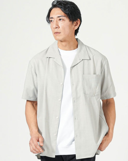 半袖シャツは一枚で着るよりも前ボタンを開けて中のTシャツを見せる、羽織りとしての着方が爽やかさが増します。