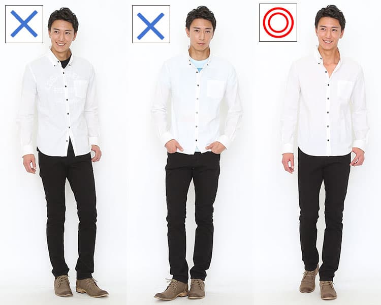 ■ダサく見えてしまう白シャツ×インナーのNGコーデ例