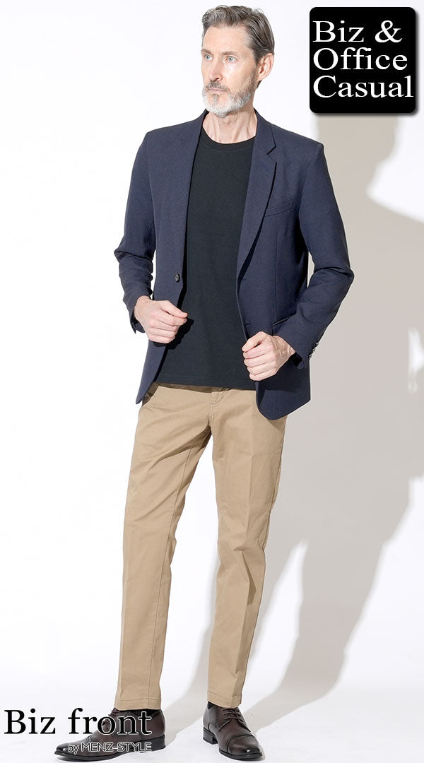 ネイビーは合わせやすい色に見えて、ズボンの色合わせ次第で印象が大きく左右される色でもあります。