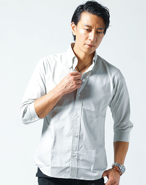 日本製ボタンダウン7分袖・半袖ブロードシャツ