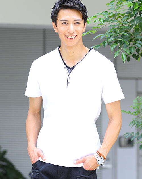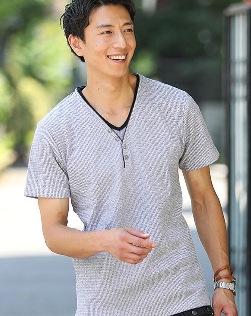 一般的な無地Tとは違い、表面に凹凸感のあるランダムテレコ素材を使用しているので1枚で着てもインナーで着ても「オシャレ」が作れます。