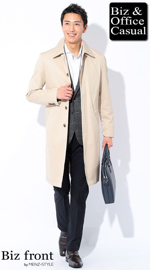 少しカジュアルに見えるベージュジャケットも、合わせるアイテム次第ではビジネスシーンでも着られます。