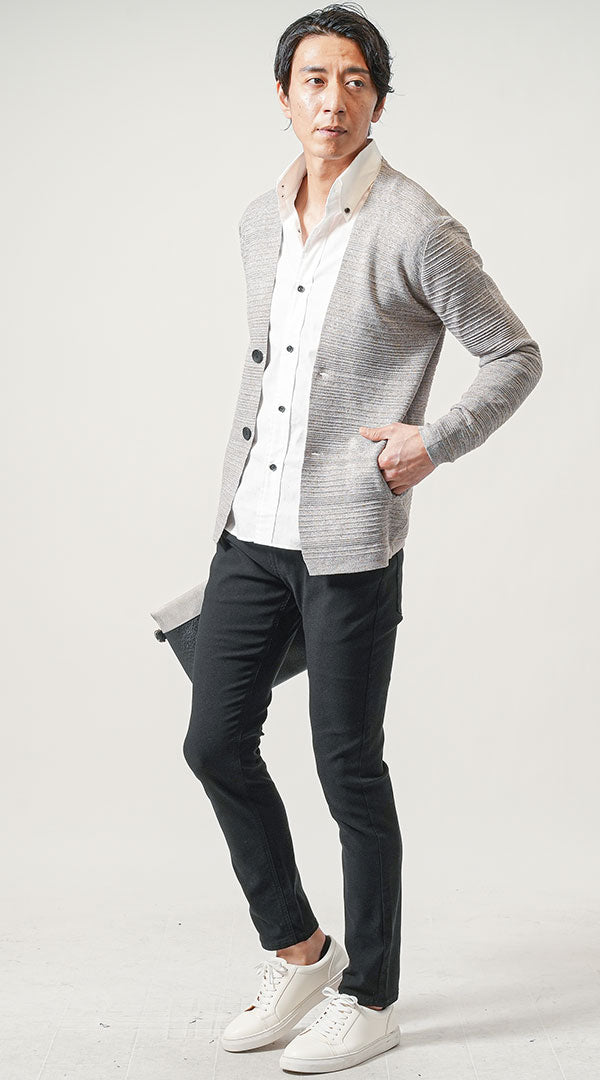 今回は白の襟シャツを合わせたメンズコーデ。