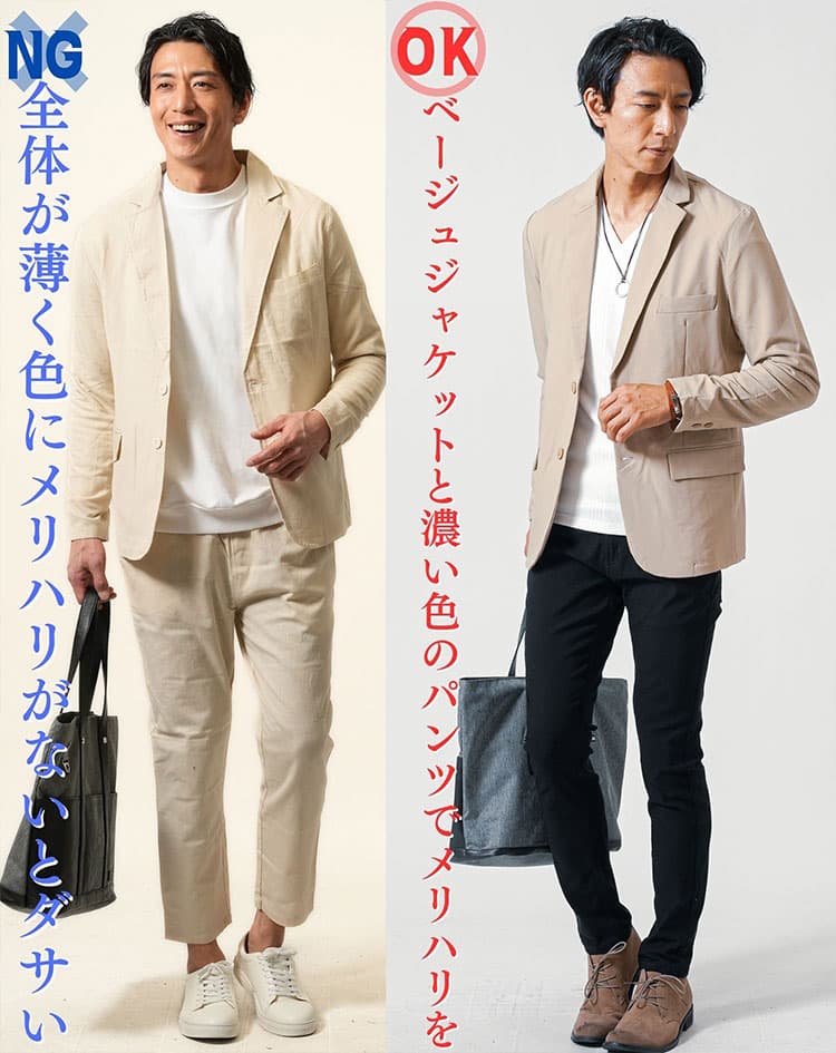 - メンズのベージュジャケットコーデのポイントが分かる
