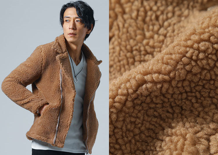 モコモコとした肌触りで暖かいシープボア素材を使ったライダースジャケットです。
