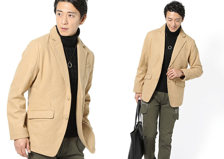 防寒性のウール素材を配合することで冬でも暖かいジャケットスタイルを楽しむことができます。
