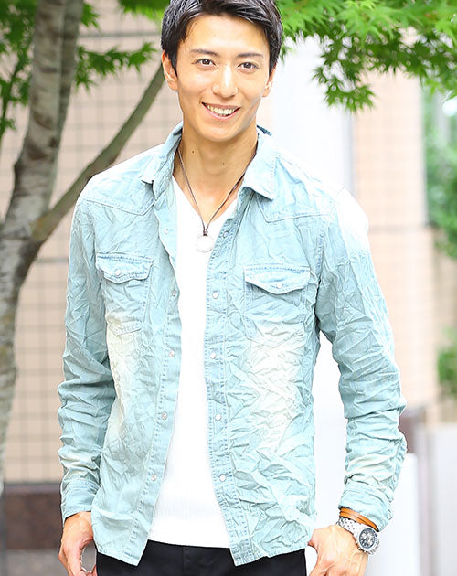 ヴィンテージ加工ウエスタン長袖デニムシャツ