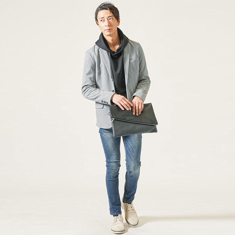 大人の男性の黒パーカー×グレーテーラードジャケットコーディネート