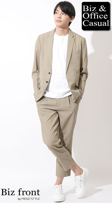 セットアップ 長袖ストレッチテーラードジャケット×テーパードパンツ
