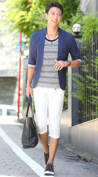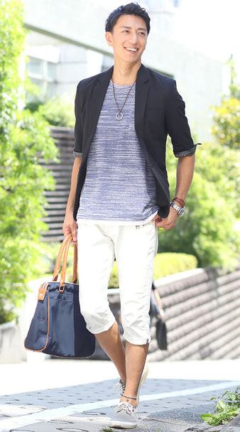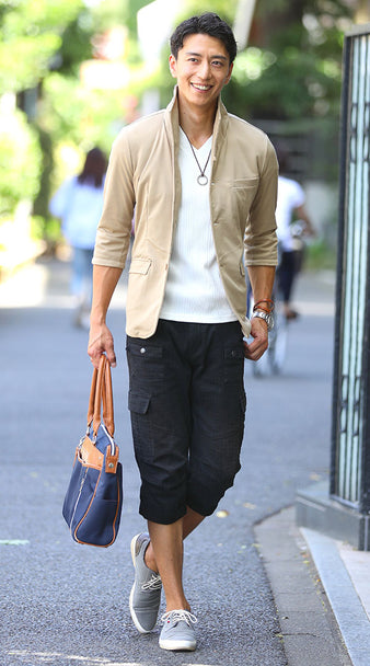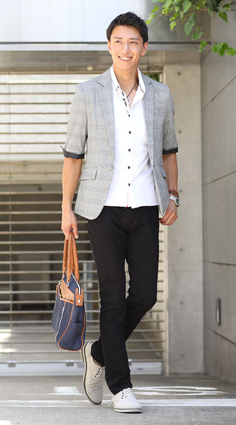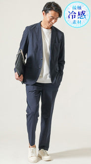 また、テーラードジャケットは5分袖を選ぶことで爽やかさをキープします。