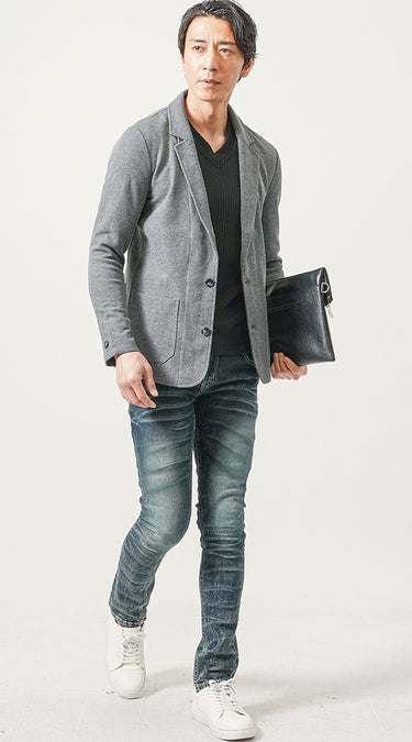 ジャケットにジーンズを合わせたスニーカーコーデもかっこいい!