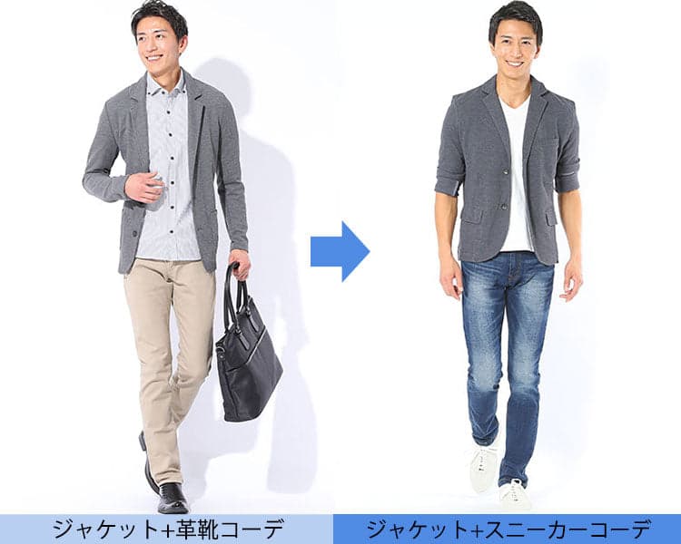 - ジャケパンとスニーカーのお手本コーデを紹介