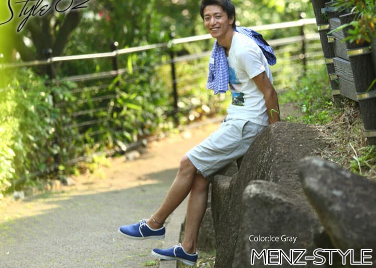 靴下はくるぶし丈のスニーカーソックス(ショートソックス)を合わせると、靴下が靴から見えないのでおすすめです。