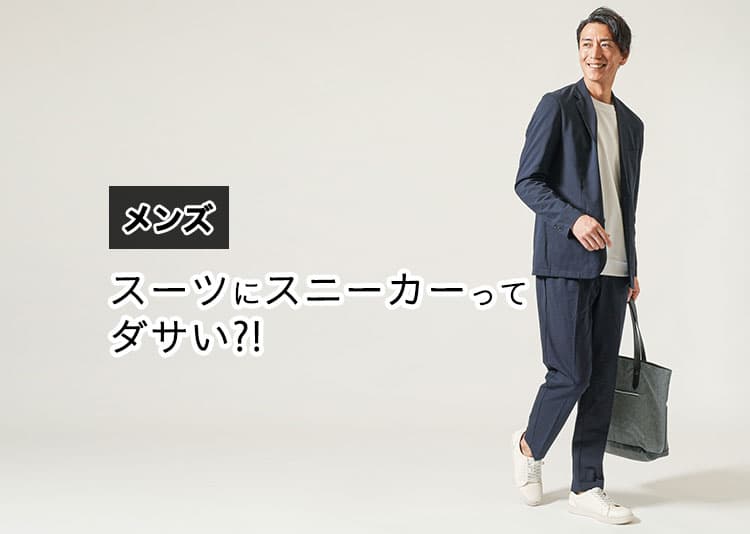 特に男性の場合、「スーツは仕事用の真面目服」 「スニーカーは休日の楽ちん靴」と思い込んでいたり、学生時代から履き続けたスニーカーを“いつもの流れで”合わせてしまうことも多いですよね。