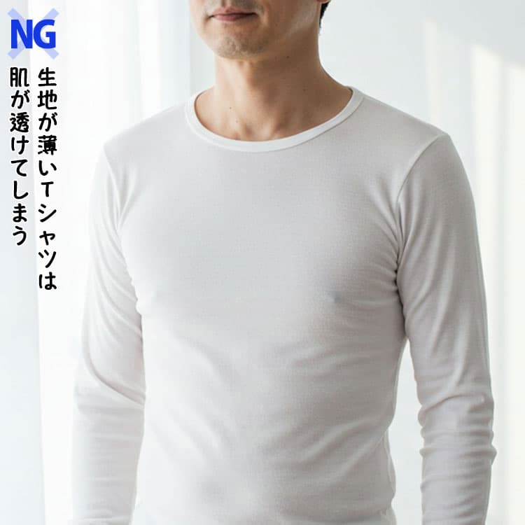 MENZ-STYLEでは、一枚で着ても透けない白Tシャツや、Tシャツの下に着る透けにくいインナーを展開しています。